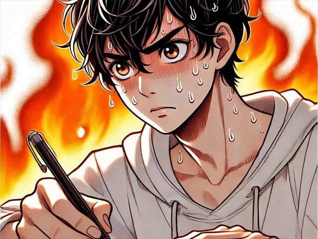 背景の集中線を描くために、炎尾燃がいかに犠牲を払っているかが分かる1話の冒頭部分です。